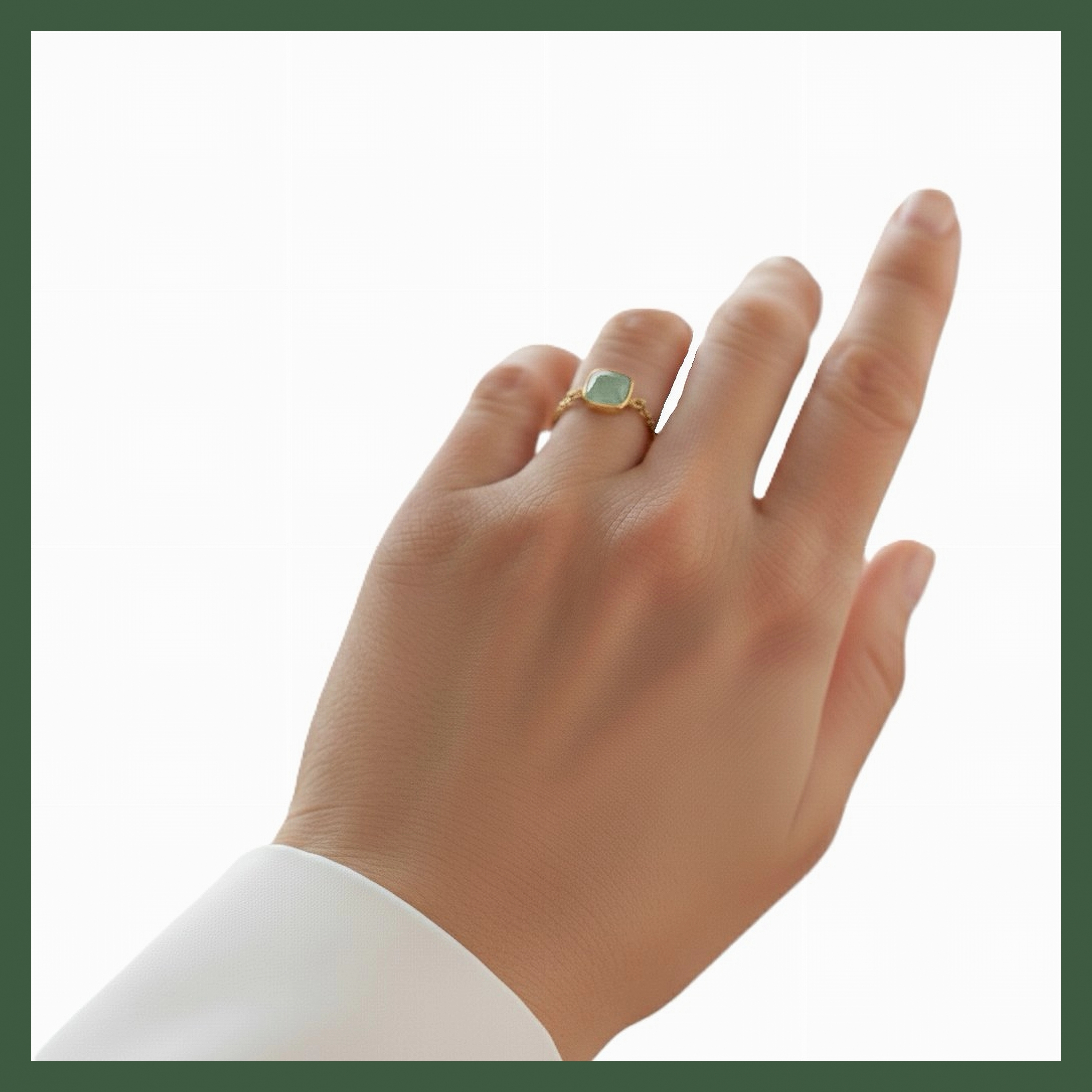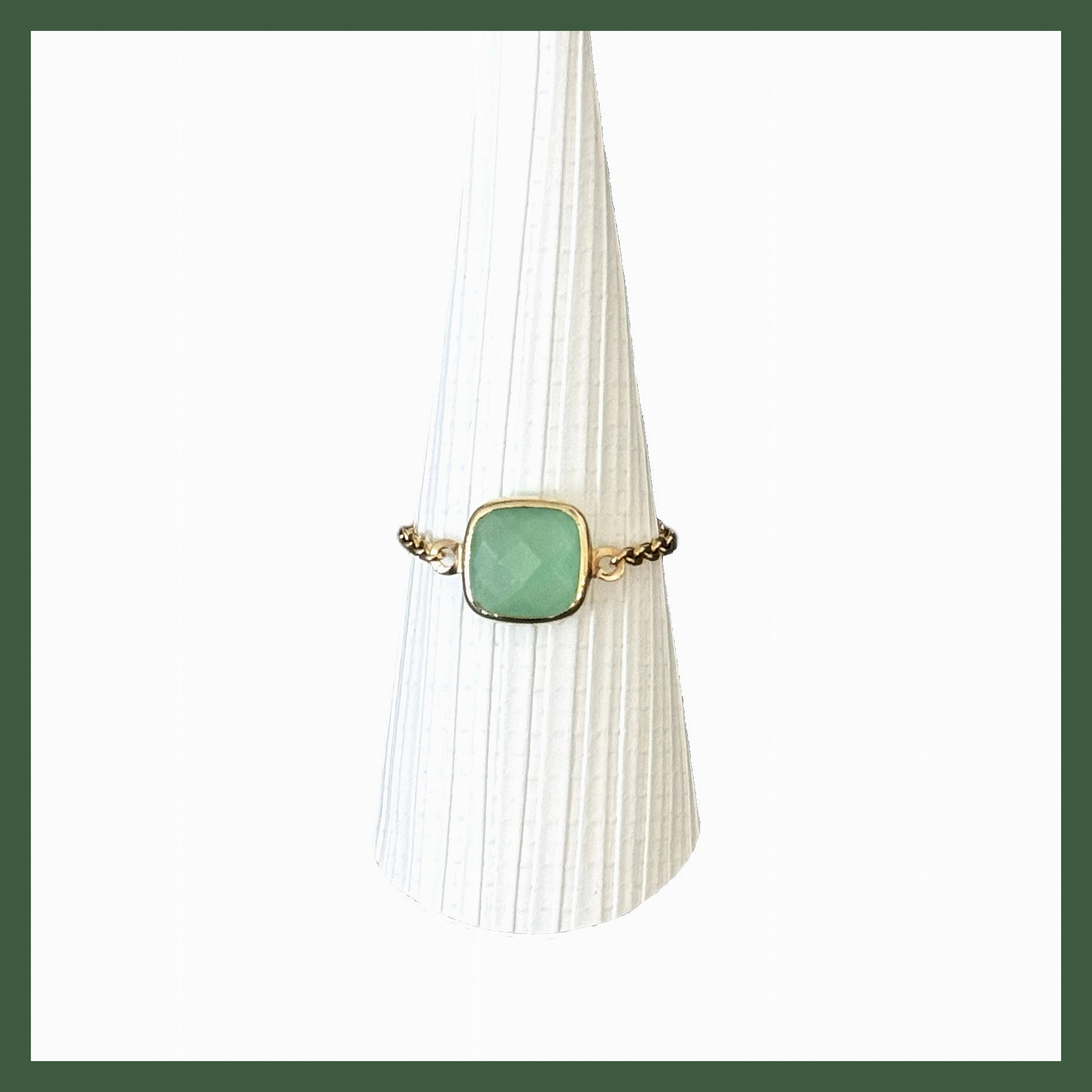 Serti clos plaqué or 18 carats carré, de couleur vert aventurine
