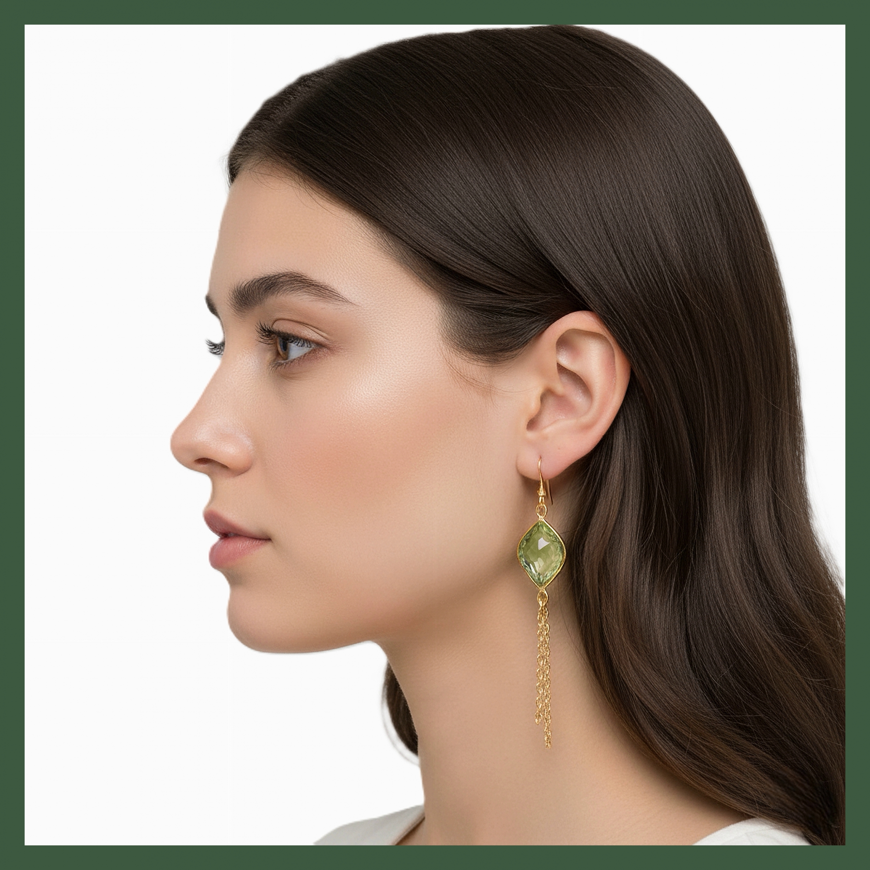 Boucles d'Oreilles Pendantes Quartz Hydro vert serti clos Plaqué Or