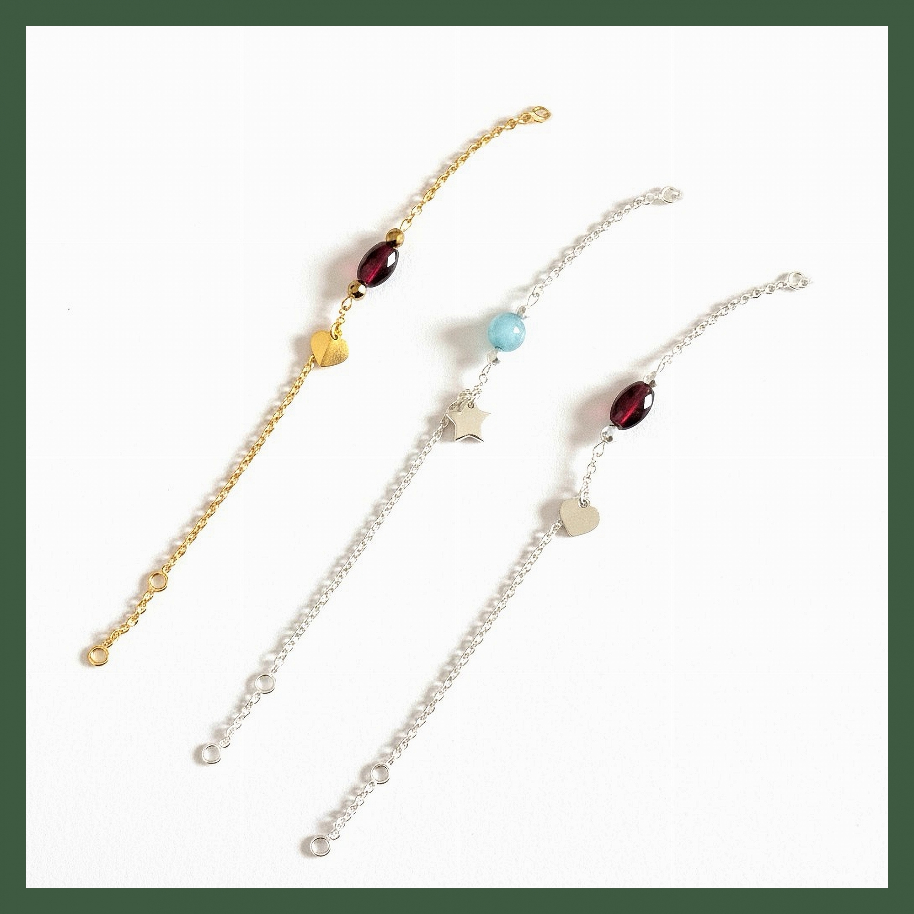 Bracelet grenat et coeur