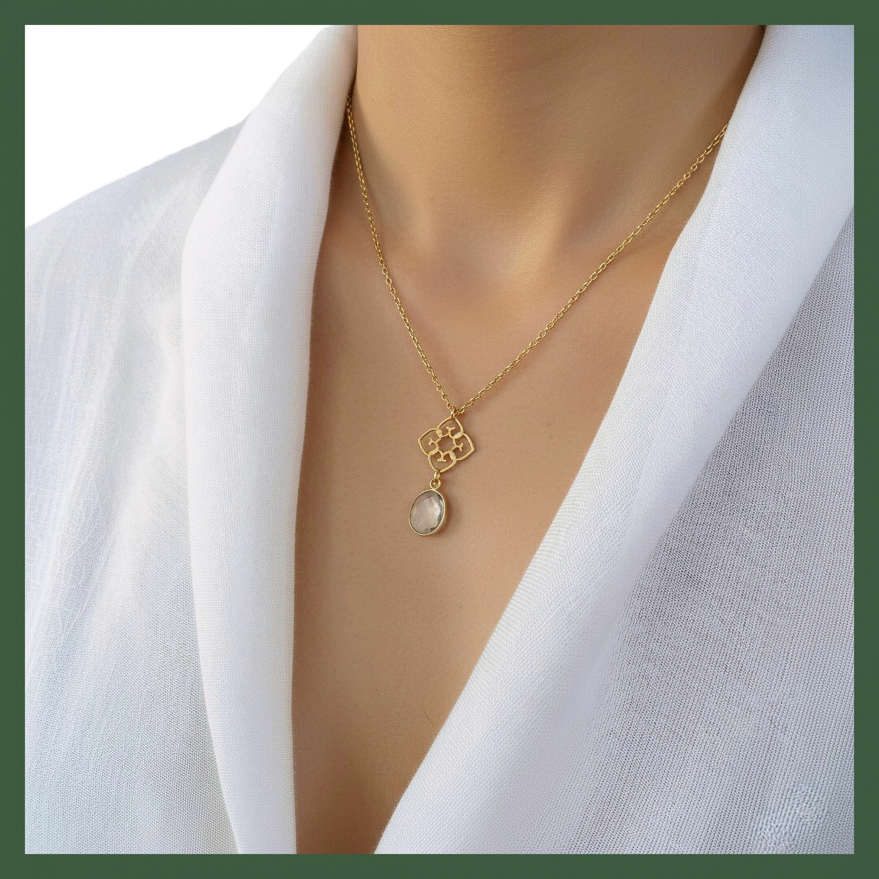 Collier Chaîne Plaqué Or 18 carats arabesque 4 cœurs et cristal serti clos