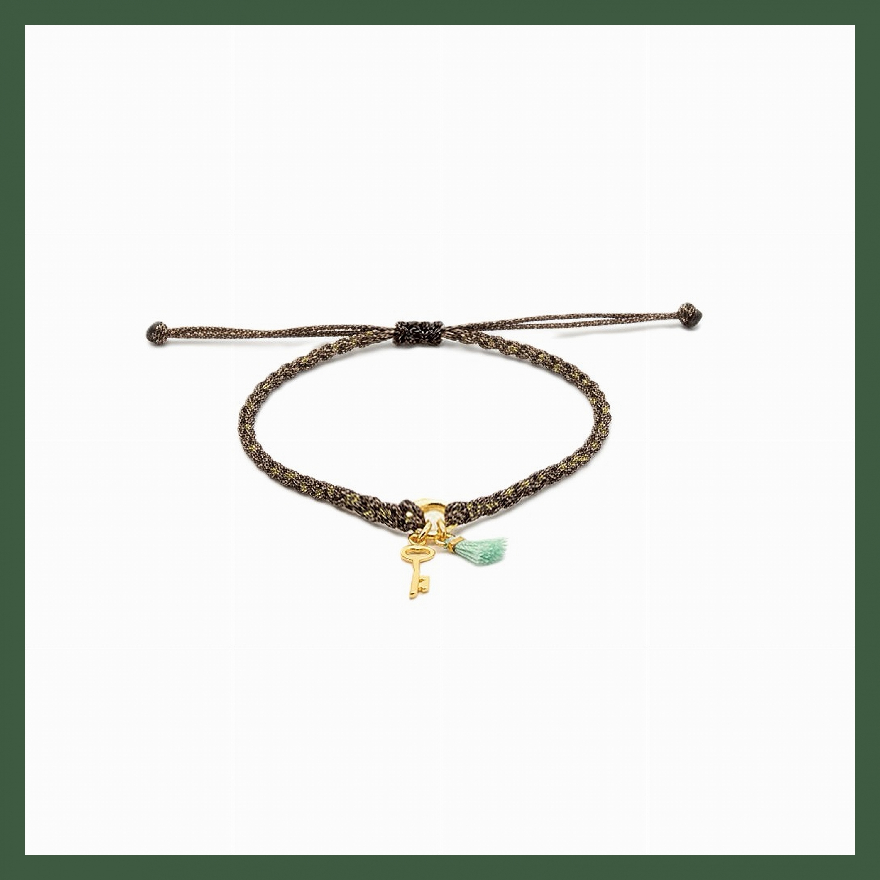 Bracelet Clé Plaqué Or et Mini Pompon Vert