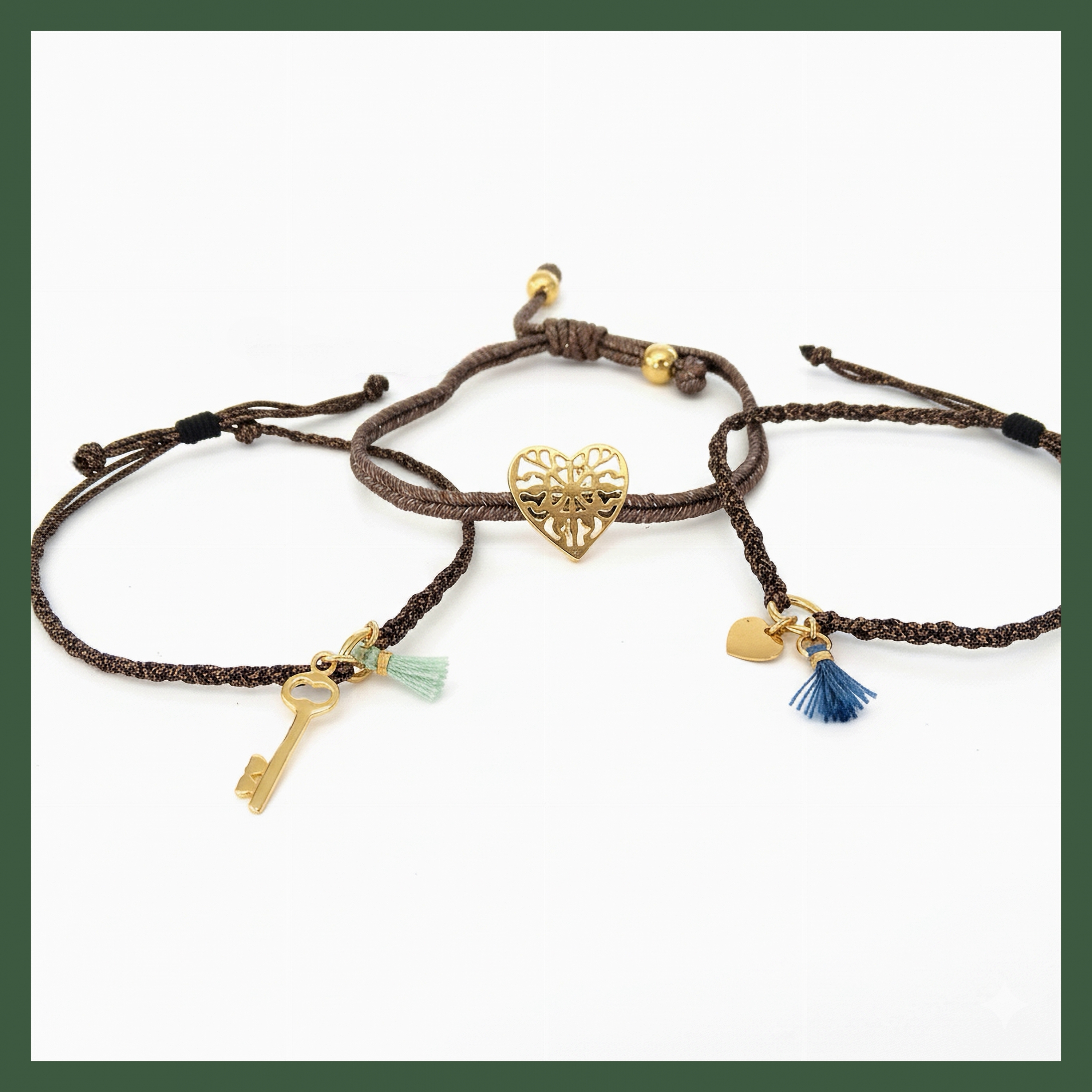 Bracelet Lien Coulissant Clé et Mini Pompon Vert