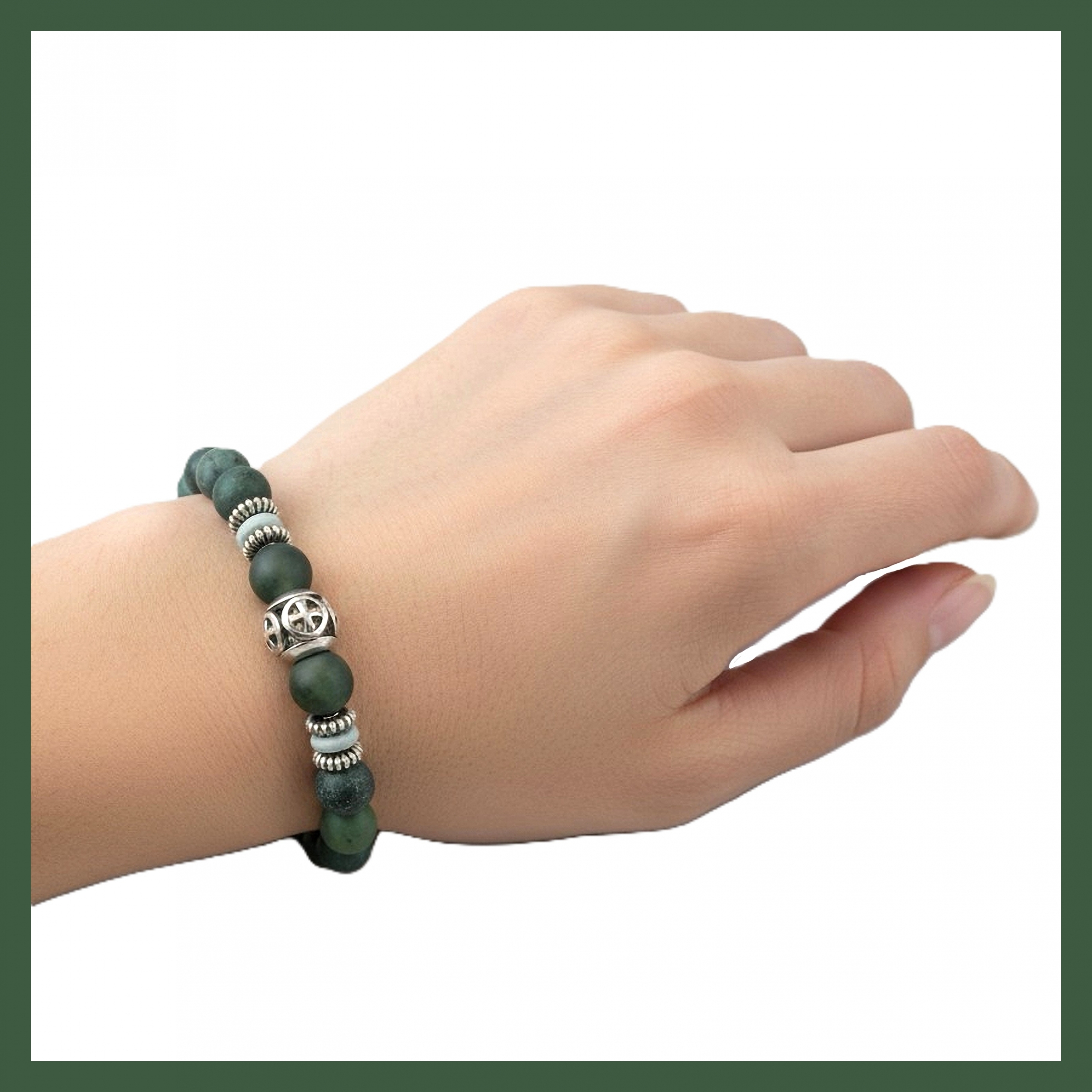 Bracelet perles Agate mousse et croix de Malte